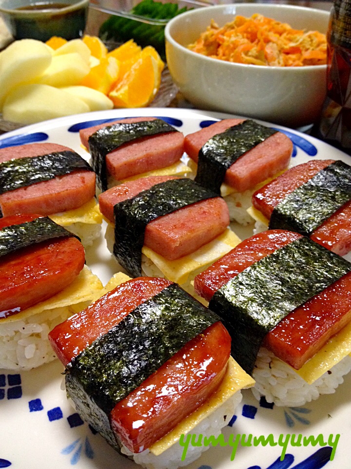 スパムおにぎりです 南国気分 でたん と食べてね レシピ 作り方 By ゆんゆんゅん 楽天レシピ